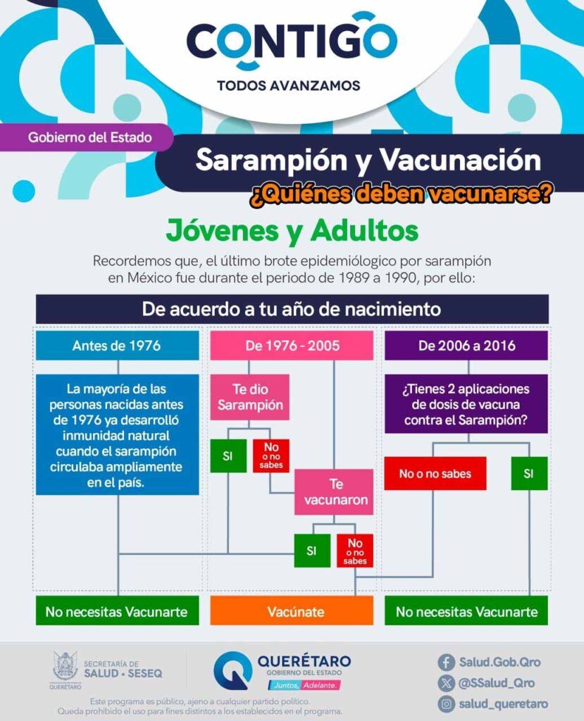 La Secretaría de Salud del Estado de Querétaro (SESA) reforzó las acciones de vigilancia epidemiológica y vacunación contra el sarampión, luego de que se confirmara el primer caso en el país en febrero de 2025. La dependencia hizo un llamado a madres, padres, tutores y a la población menor de 49 años a revisar su Cartilla Nacional de Salud y acudir a completar o iniciar su esquema de inmunización.