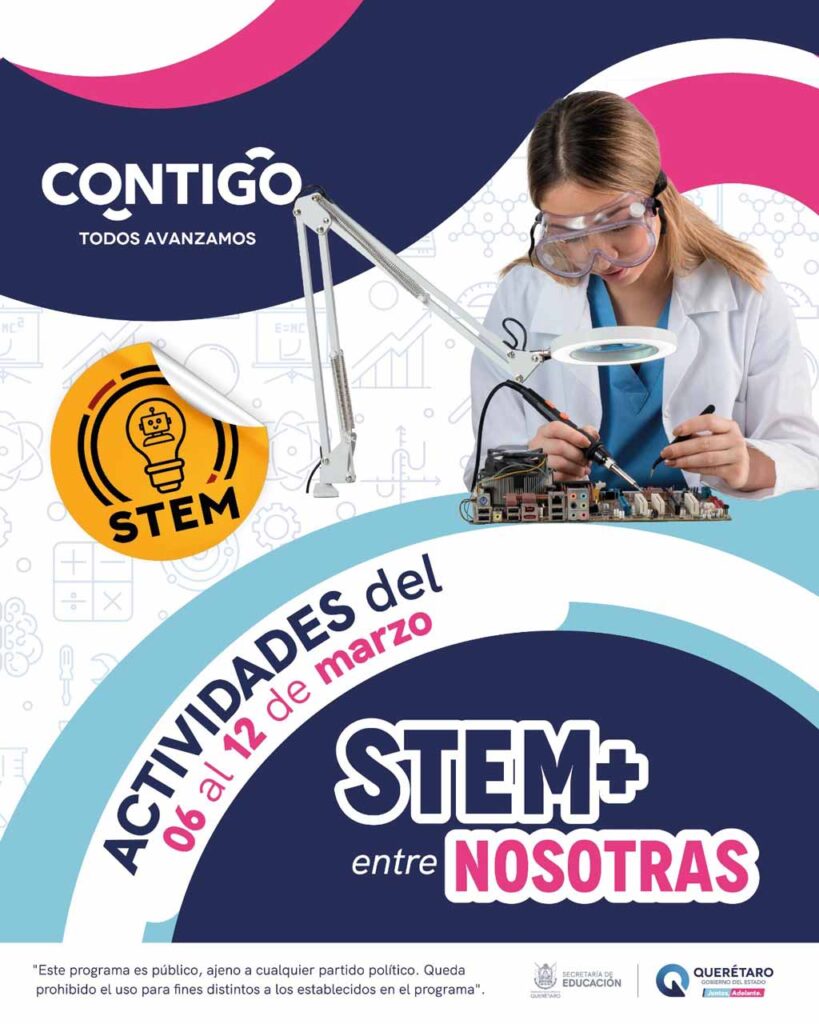 El programa completo de “STEM+ Entre Nosotras” puede consultarse directamente en las redes sociales de SEDEQ: @educacionqro o al 442 238 5114; de igual forma, pueden consultar las plataformas de las instituciones que también participan.