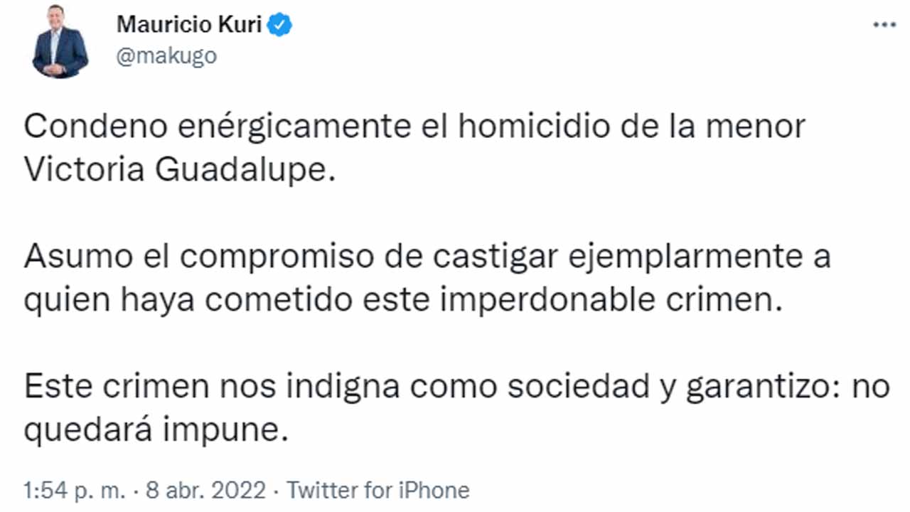 Luego que la Fiscalía General diera a conocer que fue hallada sin vida la menor Victoria RM; el gobernador de Querétaro, Mauricio Kuri González, condenó enérgicamente su homicidio.