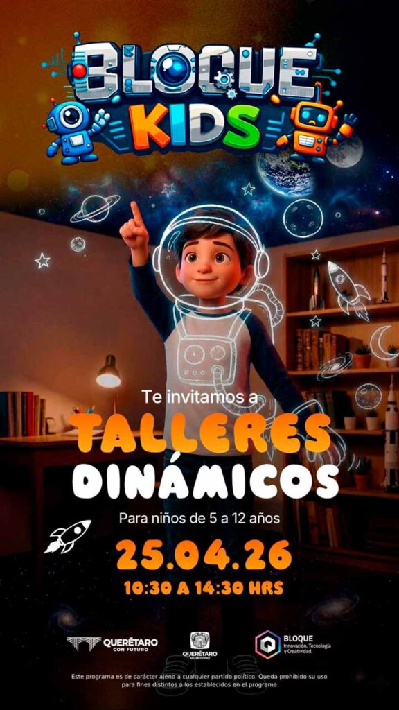 BlOQUE Kids ofrecerá talleres gratuitos de robótica, IA, drones y ciberseguridad para niñas y niños en Querétaro.